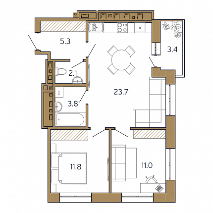 61.7м2 Площадь