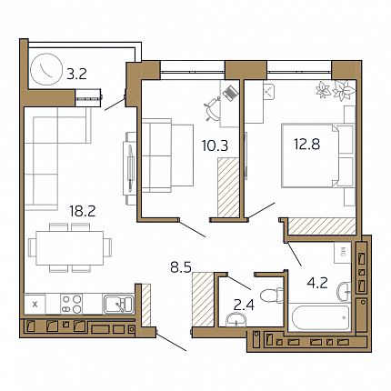 2-комнатная студия