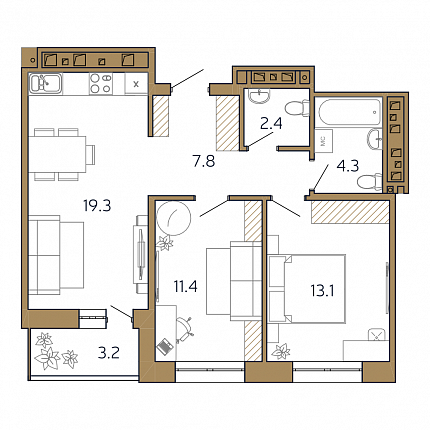 61.7м2 Площадь