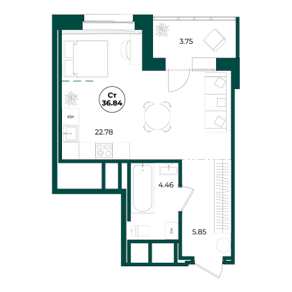 Можно приобрести в новостройке у застройщика «ССТ» квартиры-студии со стандартной или улучшенной предчистовой отделкой. А можно выбрать вариант с ремонтом под ключ. Вам останется только выбрать мебель и поставить технику.